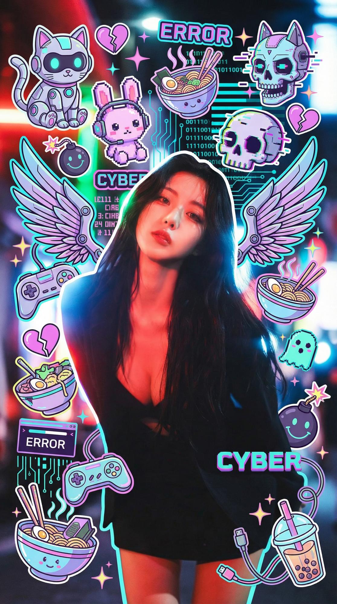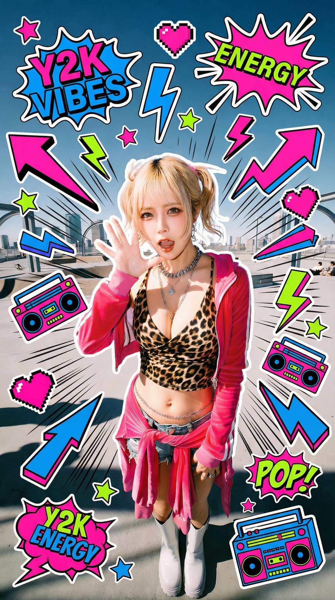 "ภาพปะติดป๊อปอาร์ตที่ผสมผสานใบหน้าเสมือนจริง พื้นผิวกระดาษฉีกขาด พื้นหลังแบบฮาล์ฟโทน และตัวพิมพ์ตัวหนาสำหรับกลิ่นอายของปกนิตยสาร"